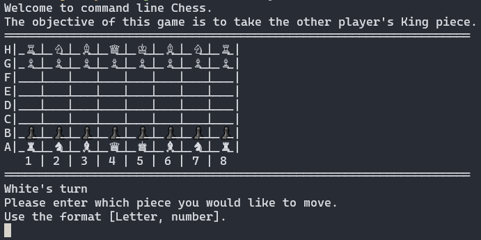 A Ruby application with a command line GUI of a chess board. The application allows for two users to play a game of chess against each other.